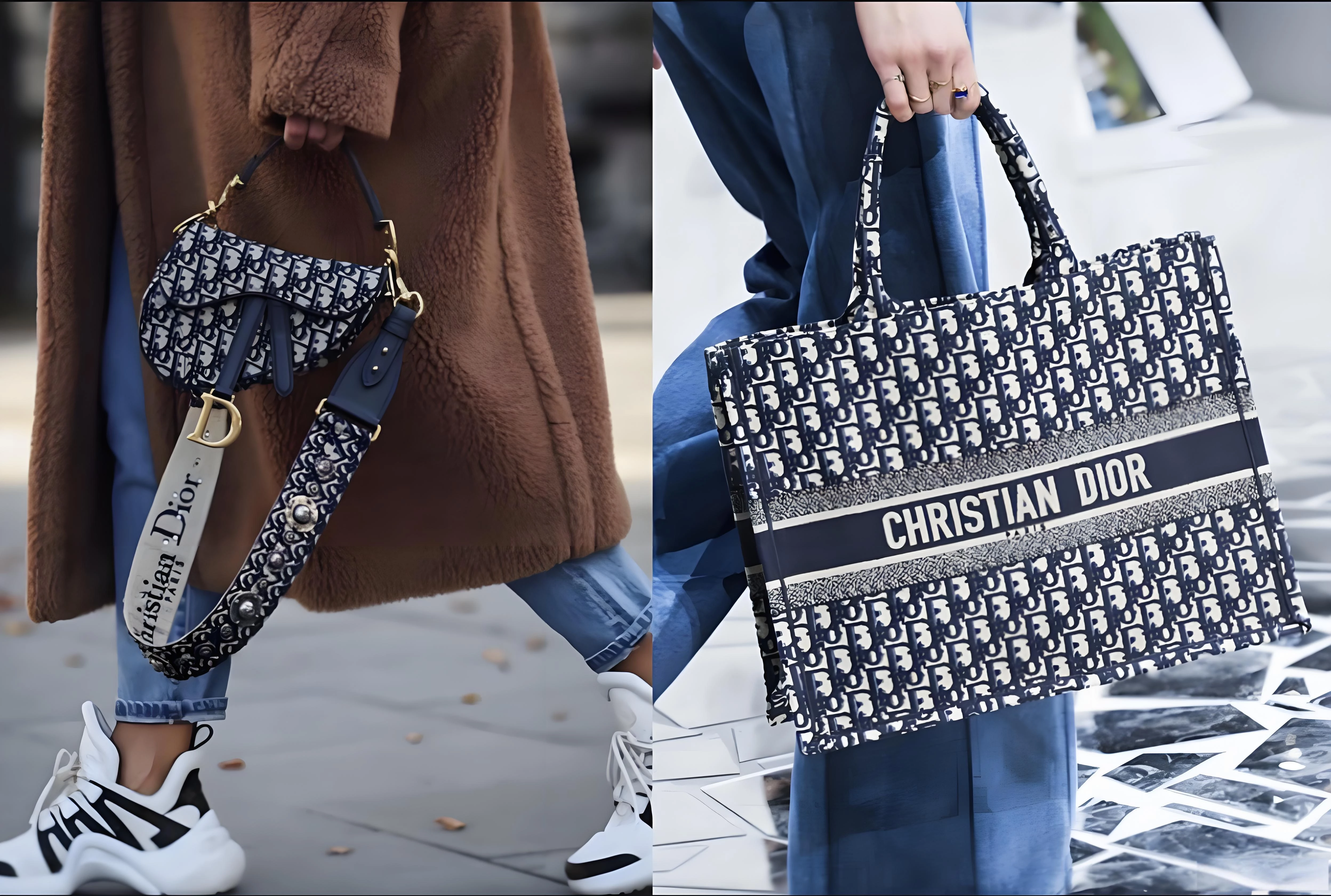 UrbanStyle 5268 Mini Vertical Dior Book Tote with Strap In Macro Houndstooth Motif Canvas Black